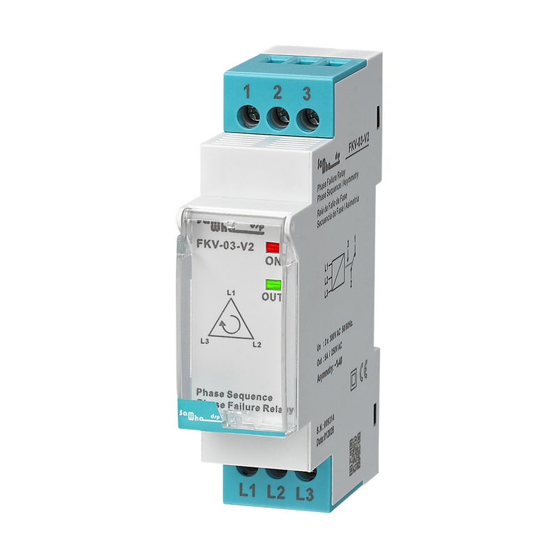 FKV-03-V2 is a 3 phase protection relay for 3×380VAC systems. It provides fixed phase imbalance protection and phase sequence protection, helping prevent equipment damage caused by phase loss, incorrect phase rotation and voltage imbalance. Ideal for motors, pumps and industrial applications.