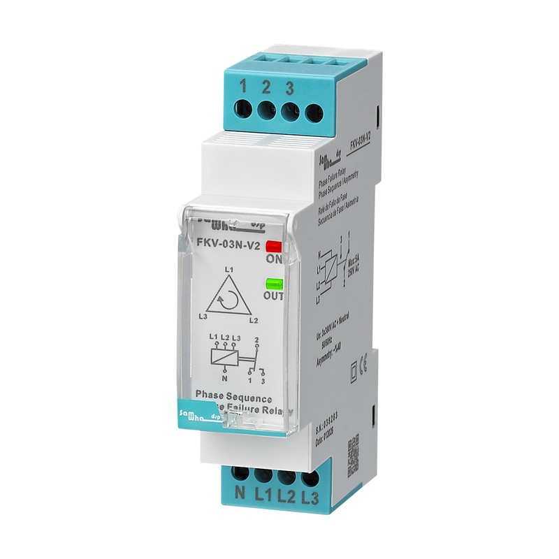 FKV-03N-V2 is a 3P&4W phase protection relay designed for phase failure, phase sequence and phase imbalance protection. With fixed 40% imbalance detection, it is suitable for 380VAC power systems.